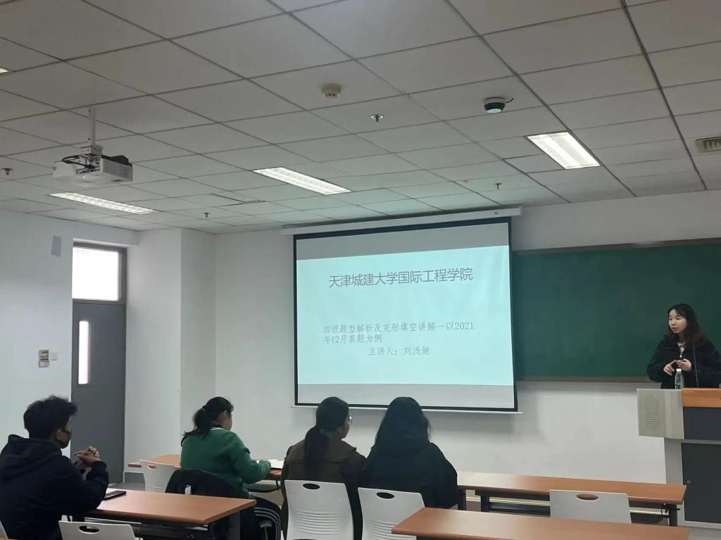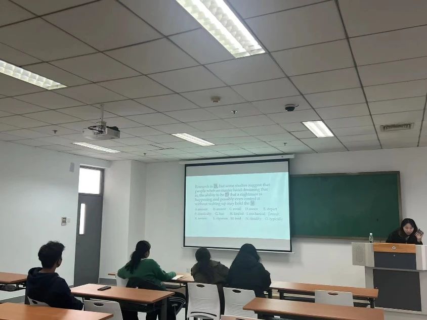 刘浅驰同学主要讲解了四级的考试流程和完形填空方面的知识,使得23级同学对12月份的四级考试有了更大的把握。