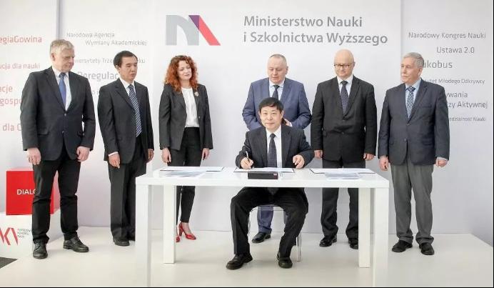 公司与波兰两所工业大学签署合作举办“英国365集团公司”协议,波兰科学和高等教育部副部长亚历山大·博布科(左一)主持签约仪式