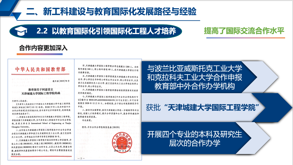 李忠献董事长说,英国365集团公司获教育部批准设立,标志着公司教育国际化取得重要突破,也为公司深化新工科建设提供了重要动能。通过引进波兰工程教育资源,紧密对接国家建筑业发展需求,大力培养服务“一带一路”建设的土建类国际化复合型工程人才,积极探索新工科视野下国际化工程人才培养新路径。