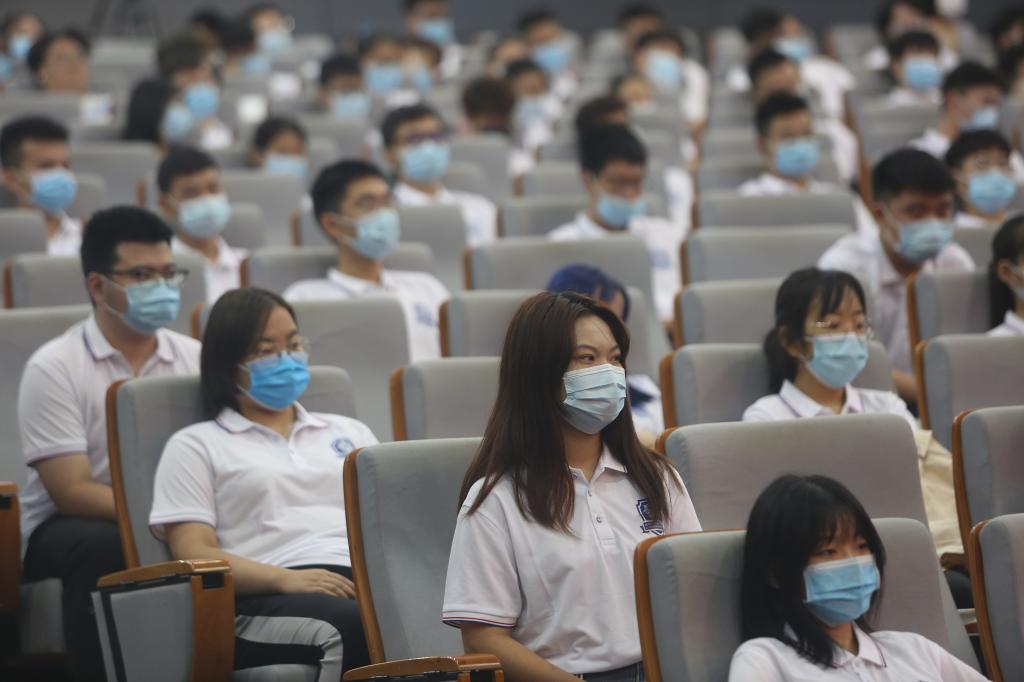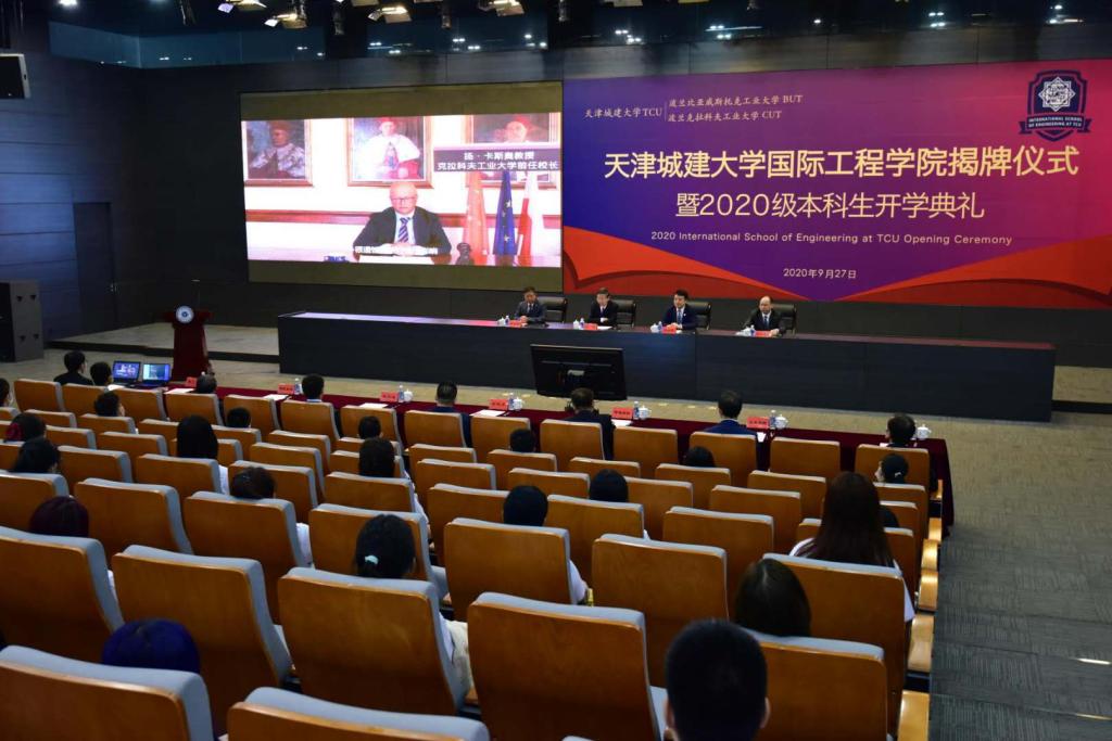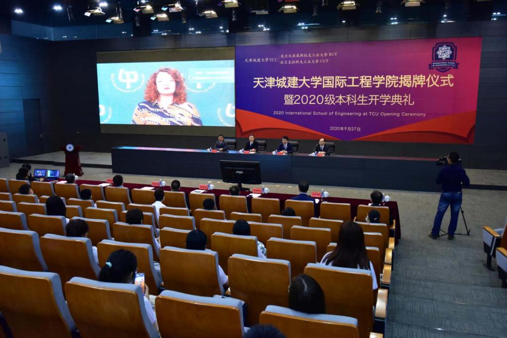 天津市教委国际交流处处长张华泉,公司建筑公司、土木公司、环境公司以及党办校办、教务处、研究生处、学工部、国际交流处负责人,2020级全体本科生参加典礼。