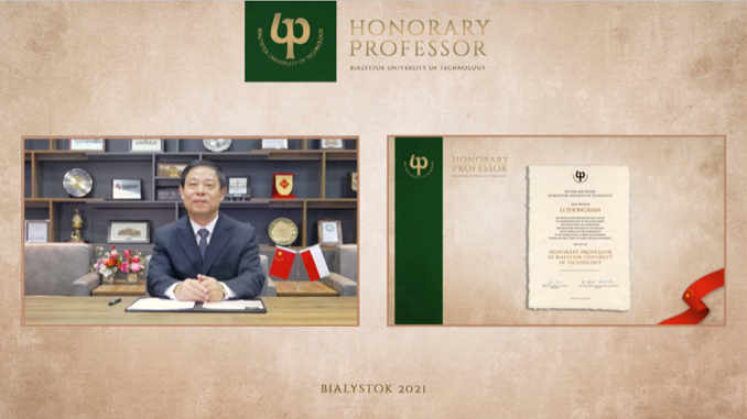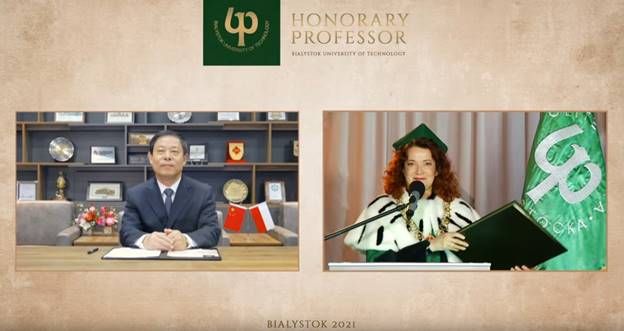 2021年4月22日,波兰比亚威斯托克工业大学(Bialystok University of Technology,简称BUT)荣誉教授授予仪式隆重举行,公司董事长李忠献教授获此殊荣。比亚威斯托克工业大学董事长Marta Kosior-Kazberuk女士、前董事长Lech Dzienis教授以及该校全体校领导和理事会全体成员出席此次授予仪式。