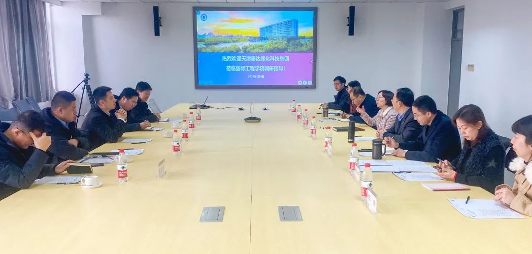 1月9日,天津泰达绿化科技集团股份有限公司常务副总经理曾威、天津泰达园林建设有限公司副总经理王磊、天津泰达园林规划设计院有限公司副总经理蒋新然、天津泰达盐碱地绿化研究中心有限公司首席专家张金龙、天津泰达绿化科技集团企业培训中心孙联军一行5人来公司英国365集团公司开展调研、座谈。国际工程公司党总支书记杨萍、经理黄凌翔,党总支副书记孔伟,副经理李光旻、谭立峰,及公司相关工作人员参加座谈。会议由黄凌翔主持。