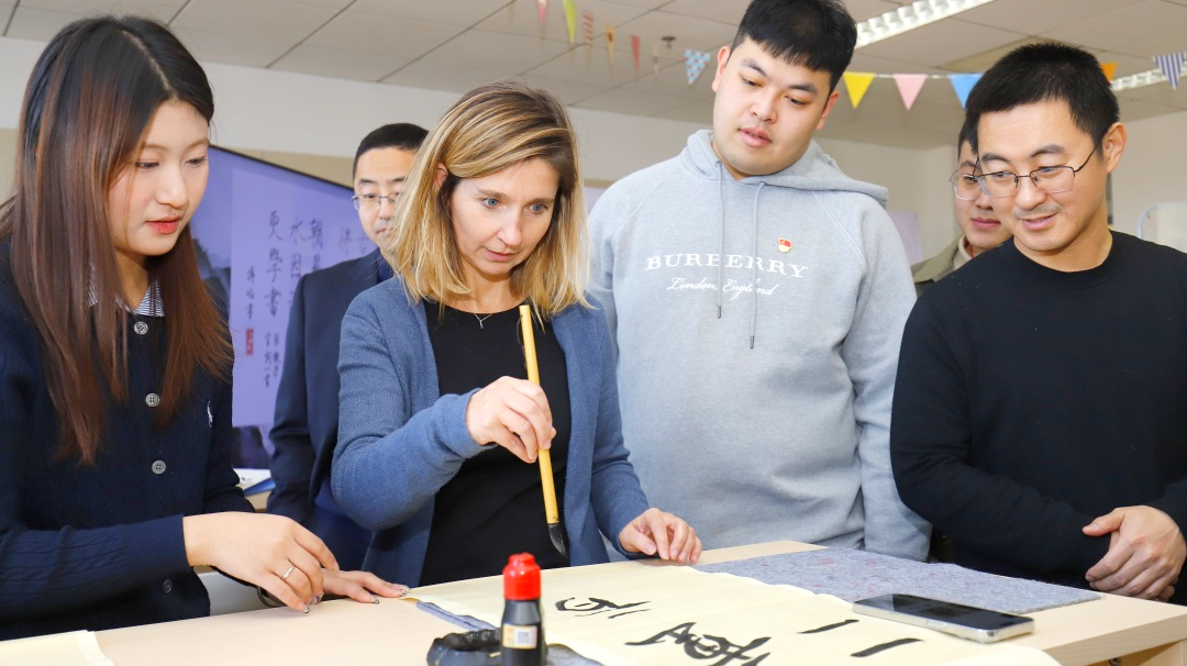 一带一路研习社立足中外合作办学实际,营造“浸入式英语学习氛围”,研习社的老师和同学们连续2年起草、翻译、组织拍摄公司中英文招生视频,撰写并翻译现教中波文化走廊,制定各专业英语词汇书,让国工学子增强文化自信,开阔国际视野。