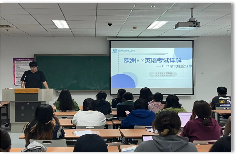 为了帮助新生更好地应对欧洲B2语言考试,社团组织了优秀员工分别以线上、线下两种形式为大一新生详细讲解考试流程。