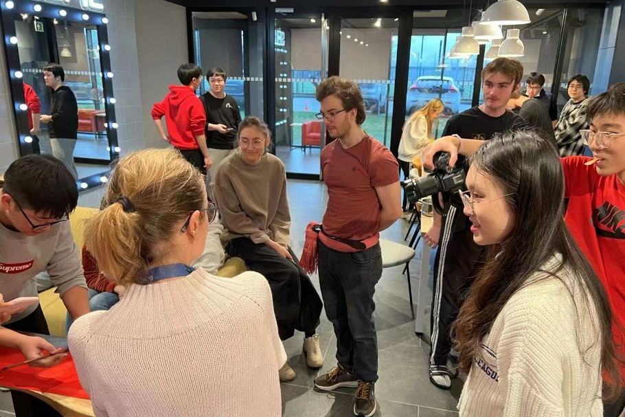 “福“字与春联是中国传统文化中寓意着吉祥如意、欢乐祥和,以美好的语言祝福新春,表达人们内心美好生活的祝愿与向往。在新年来临之际,在波师生纷纷在红纸上写下对龙年最美好的新年祝福,希望在未来的一年中新年胜旧年,万事皆可期,龙年生活更加幸福美满。不仅如此,在波师生同样热情邀请他国的国际生们加入到新春的氛围中来,在一笔一划中体验中国传统文化的内涵与魅力,许多不同国家的同学们纷纷驻足观看、拍照留念,不时引得大家赞叹。