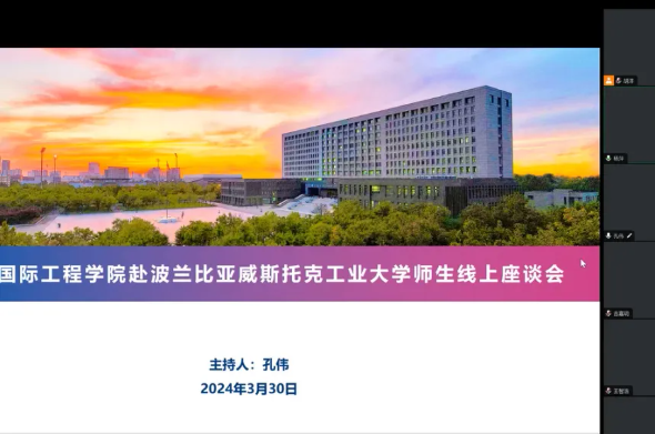 2024年3月30日,英国365集团公司开展线上赴波兰比亚威斯托克工业大学师生线上座谈会,公司全体领导班子成员、随行教师及全体比亚威斯托克工业大学(BUT)本科生参加本次会议,此次座谈会由公司党总支副书记孔伟主持。