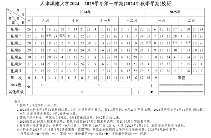 2024~2025学年第一学期校历