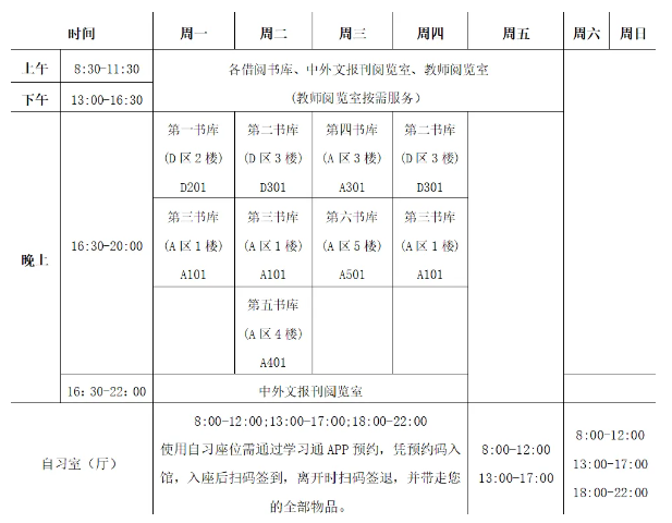 三、图书馆开放安排