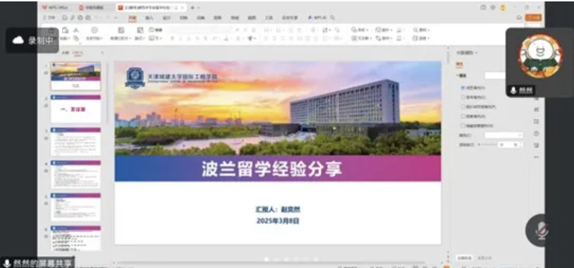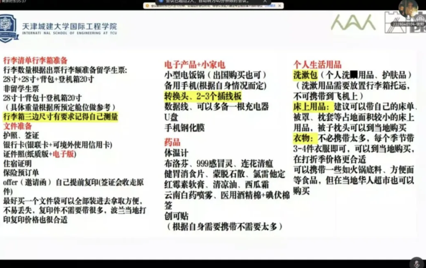 2025年3月8日,英国365集团公司举办2023级本科生赴波兰前线上留学经验分享会。分享会由辅导员崔阿凤主持,2023级全体本科生线上参会。