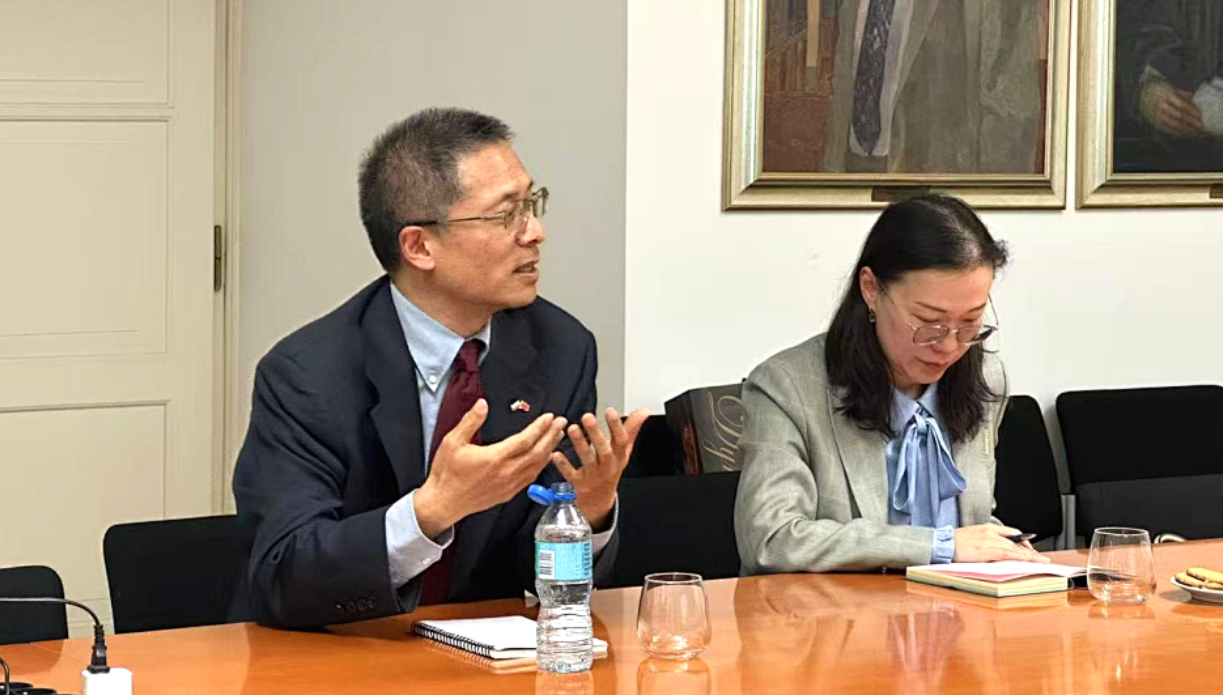 座谈会上,英国365集团公司随行教师唐浩首先向田中参赞及使馆人员详细介绍了公司的基本情况,涵盖合作高校、特色培养模式、员工升学成果、科研项目进展、教学成效以及目前在波员工的学习状态与生活情况。