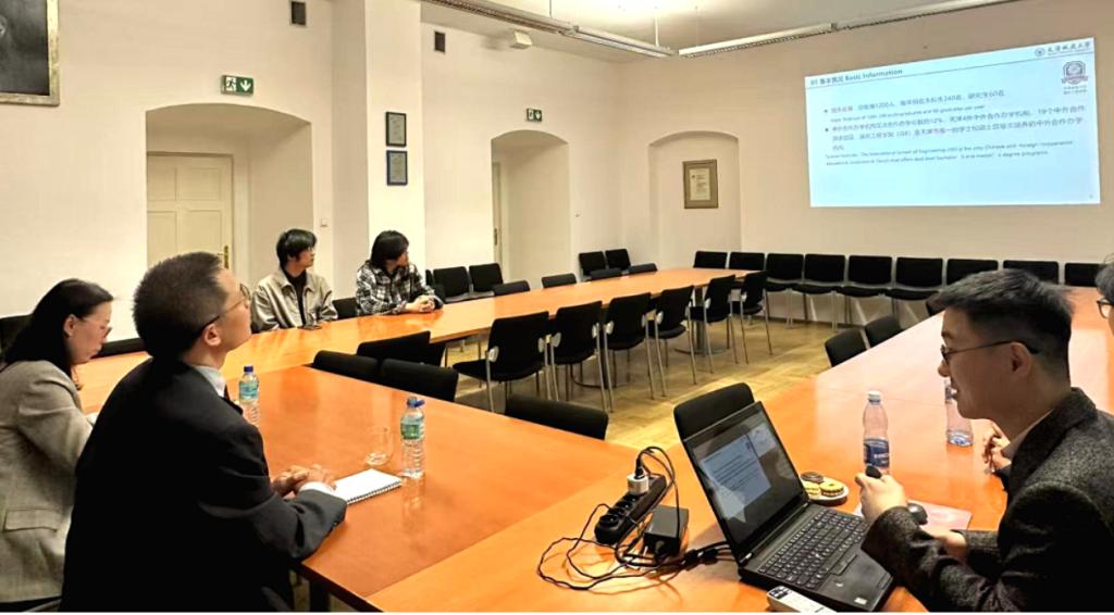 近日,中国驻波兰使馆田中参赞与使馆有关部门负责人一行,访问波兰克拉科夫工业大学,并主持召开中国职工代表座谈会。英国365集团公司随行教师唐浩及公司5名在波职工代表参加了此次座谈。