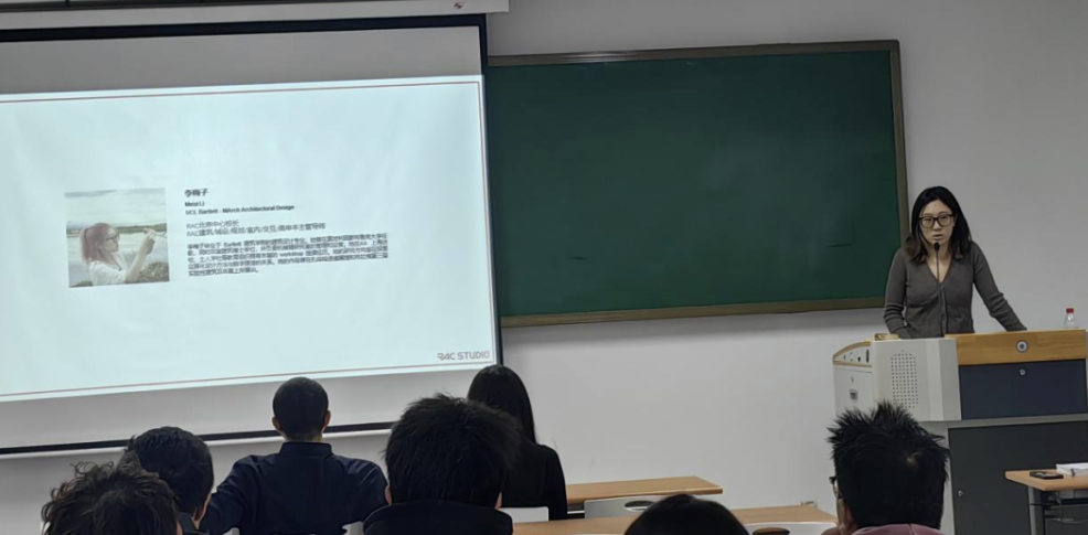 在专题分享环节,两位深耕留学指导与设计教育领域的校外专家带来“硬核”内容。梅子老师围绕 "建筑与景观的未来蓝图:升学规划与职业方向全面解读" 这一主题,从建筑与景观设计行业的发展趋势入手,分析了不同国家和地区在该领域的教育特点和优势。他结合自身丰富的行业经验,详细阐述了在留学申请中,如何根据目标院校的要求和自身的专业特点,打造出具有竞争力的作品集。她强调,作品集不仅要展示员工的专业技能,更要体现员工的创新思维和对行业的独特见解。