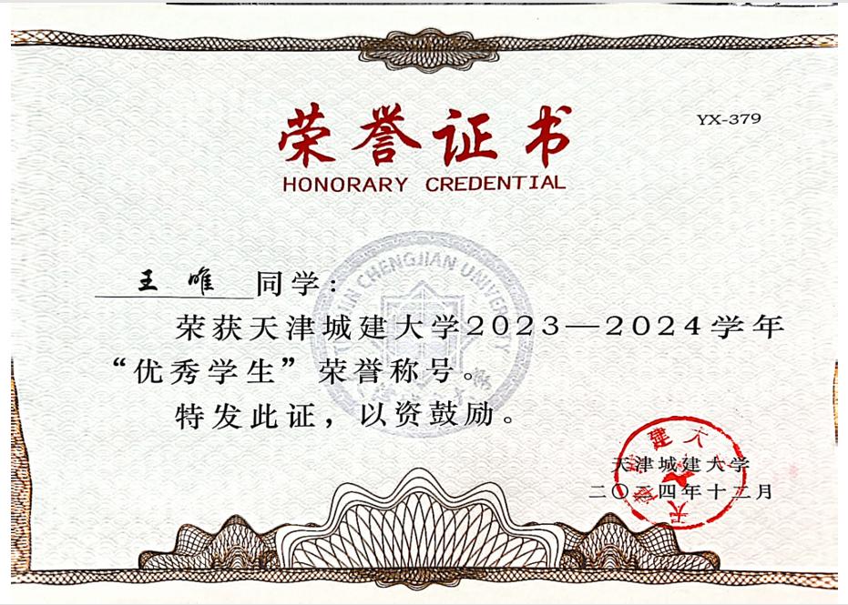 在学业方面,我始终秉持勤奋踏实、追求卓越的学习态度,最终以专业第一的优异成绩圆满完成本科学业。在校期间,我荣获一次校一等奖学金、两次校二等奖学金,并两次被评为“校优秀员工”,这些荣誉不仅是对我学习成果的肯定,更是对我综合素质的高度认可。在科研方面,我积极参与各类学术实践活动,曾在中国高校成图大赛中获得三等奖,进一步提升了我在工程制图与实践能力方面的水平。