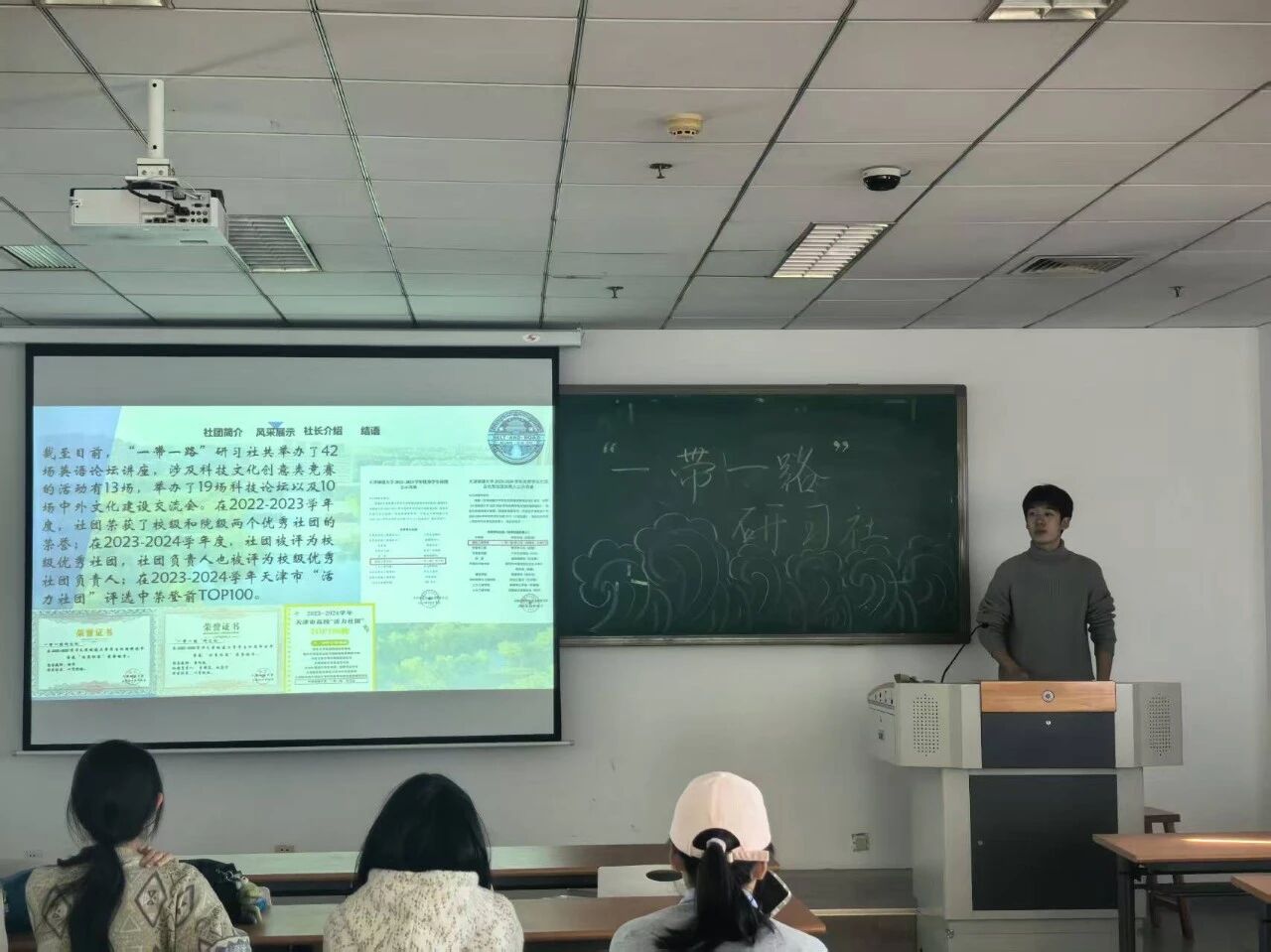 The camera freezes, capturing our shared beginning. Moving forward, the " Belt and Road " Study Club will continue to be guided by the Silk Road spirit of “peaceful cooperation, openness and inclusiveness, mutual learning and mutual appreciation, and mutual benefit and win-win outcomes.” Upholding the university motto of “Emphasizing Virtue and Competence, Excelling in Learning and Building,” we are committed to enhancing members' comprehensive qualities, broadening their global perspectives, and strengthening their international competitiveness. Let us join hands within the " Belt and Road " Study Club family, striving together and walking side by side to write the inspiring growth stories of Tianjin Chenjian University students.