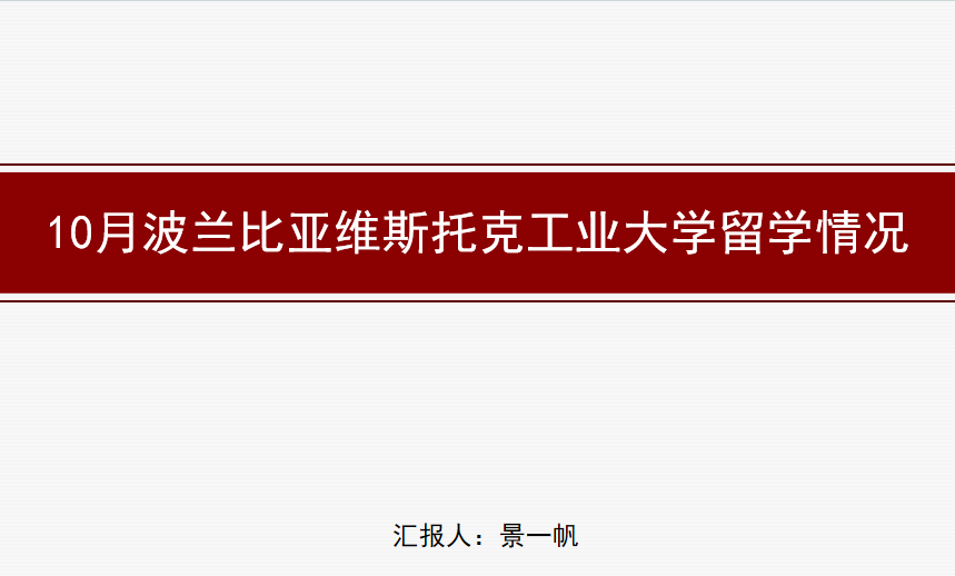 景一帆老师用详实数据与鲜活案例,复盘了同学们抵波一个月以来的学习与生活:各专业教学进度、课程亮点、考核方式逐一呈现。他鼓励大家,应在波兰的课程中逐步探索并建立自主探究、知行合一的学习方式,注重融会贯通,勤于思考,主动与波兰教师交流请教,为后续的学业发展筑牢根基。