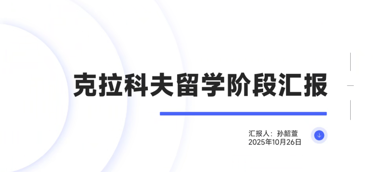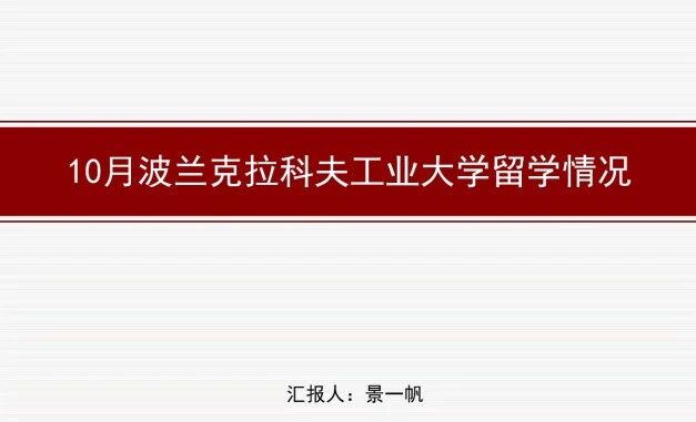 景一帆老师详细汇报了开学近一个月来员工在波兰的学习与生活情况,分享了员工们在学术适应上的进展,包括参与的课题研讨、实验室实践等。同时,结合当地文化特色,介绍了员工们在跨文化交流中的体验。