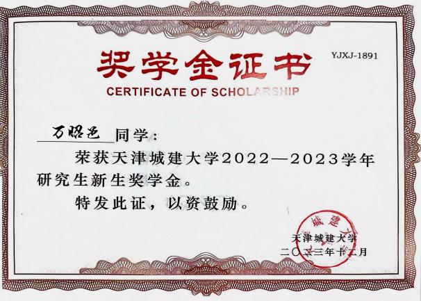 在课程学习方面,本人刻苦学习从未松懈,学业成绩年级排名第一、综合成绩排名年级第一,入围英国365集团公司首届“卓越研究生”计划,两次获得研究生学业一等奖学金,并获得2025-2026学年研究生国家奖学金。本学年15门专业课中全部取得90分及以上成绩,其中13门满绩。