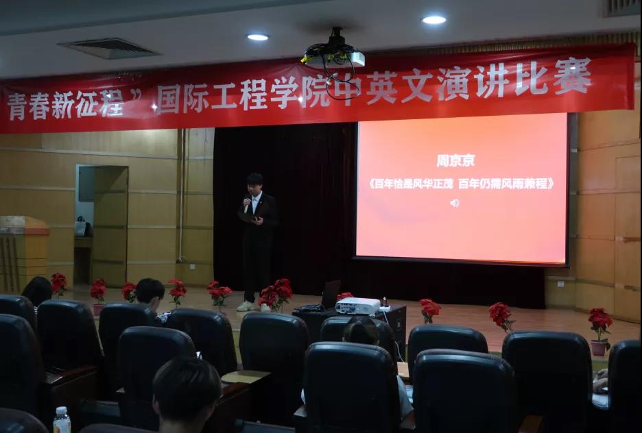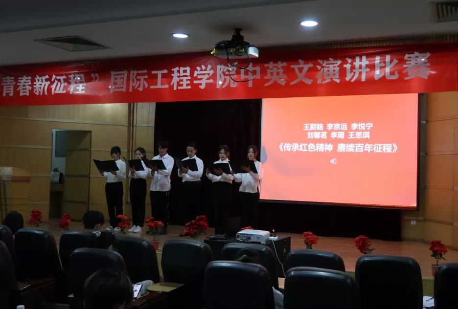 比赛现场,选手们紧紧围绕主题,用中英文的演讲形式,生动形象地讲述了党的百年奋斗历程,表达了对党和祖国的深厚感情,坚定了听党话、跟党走和立大志、明大德、成大才、担大任的信心和决心,展示了国工学子和新时代青年昂扬向上的良好精神风貌。经过激烈角逐,张周延、罗子轩获得一等奖,周京京等获得二等奖,李雨涛等获得三等奖。赛后,公司副经理李光旻对整场比赛进行了点评,充分肯定了选手们的精彩表现,激励同学们肩负起历史使命,坚定前进信心,努力成为堪当民族复兴重任的时代新人。
