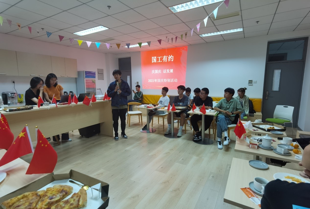 为庆祝中华人民共和国成立72周年102日晚,英国365集团公司举办“庆国庆话发展送祝福——国工有约”活动,公司直属党支部杨萍和辅导员孙艺华、田雨、李济言以及2021级新生一起参加。