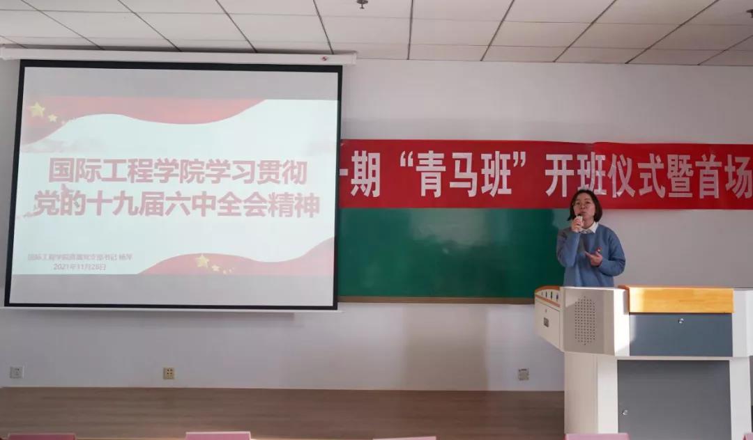 公司直属党支部书记杨萍以“学习贯彻党的十九届六中全会精神”为题为学员讲授了第一课。杨萍围绕十九届六中全会召开的重要意义和全会通过的《中共中央关于党的百年奋斗重大成就和历史经验的决议》进行宣讲解读,号召学员认真学习十九届六中全会精神,学习传承好党的百年历史经验,坚持以史为鉴,实干实学、勇于创新。并以“政治思想上先进”、“道德品行上先进”、“发挥作用上先进”、“执行纪律上先进”四个基本要求为切入点,指出优秀团干部的标准。从“理论学习”、“实践锻炼”、“志愿服务”、“对外交流”四个方面指明学员们今后的努力方向。同时结合中外合作办学特色,基于“在文化比较重坚定‘四个自信’”、“增强爱校荣校意识,爱院荣院意识”两个理念对大家提出希望,激励青马工程学员、社团骨干、积极分子、员工组织负责人传承和弘扬丝路精神,赓续红色血脉,不忘红色历史,珍惜校园时光,努力成长为信仰坚定、德才兼备、全面发展的社会主义合格建设者和可靠接班人。