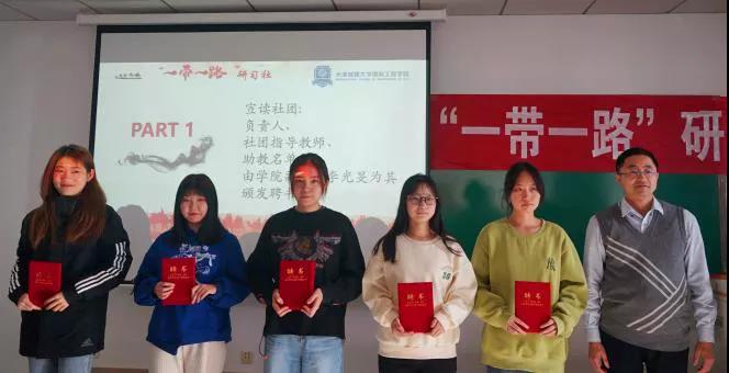 仪式一开始,全体与会人员共同观看了“一带一路”倡议和“丝路精神”视频。随后,社团负责人、2020级建筑合一薛释朋向大家介绍了社团的创立背景、主要活动安排等。社团负责人2020级环境合二班的李雨宣读了“一带一路”研习社章程。他们表示,“一带一路”研习社让我们有了一个新的员工之家,在这里,大家可以学习英语、交流文化、提升科技素养,互相启迪,增进友谊。同时,也使大家多了一个课堂,可以开展思想性、艺术性、知识性、趣味性、多样性的社团活动,校园生活更加丰富多彩。