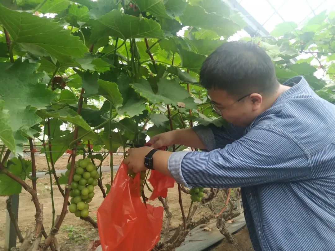 随后师生一众来到了葡萄大棚,丁家瞿阝村的葡萄远近闻名,在习总书记提出了希望天津加快发展现代都市型农业的指示后,丁家瞿阝村闻令而动,根据当地的用地环境和土壤情况,引进了不同品种的优质葡萄苗,在村“两委”的带领下,村民建设200多亩大棚,发展棚栽葡萄,并成立了专业合作社,同学们在葡萄大棚中与果农进行了深入的交流,了解农产品的选种育苗栽培等工作,纷纷表示这一串串普通的葡萄,原来凝结了这么多农民和农技人员的心血,对于农业工作有了一个崭新的认识。