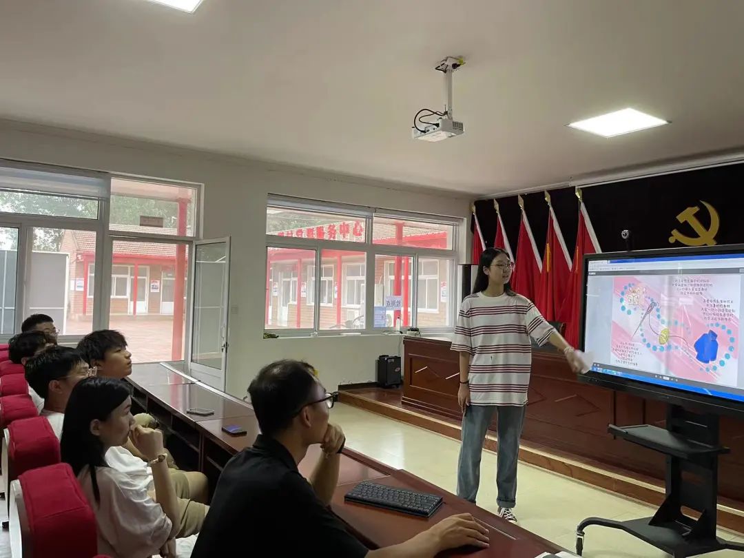 在村委会中,原村党总支书记、村委会主任张宝军热情的接待了师生一行,习总书记来到麦田中视察时,老书记正在麦田里和村民们们一起打药除虫,总书记对他们亲切关怀的场景至今历历在目,老书记嘱托同学们一定要好好学习,为实现“中国梦”努力奋斗,同时也希望同学们将来扎根基层,发光发热。在村会议室中,美术与设计公司为村党委带来了红色教育的绘本,这个绘本是由同学们根据自己家乡的红色故事原创而成,采取了生动的画风,深受小朋友们喜欢,希望在村中对儿童的红色教育中发挥作用,城建大学英国365集团公司的同学与公司学子进行了交流学习,纷纷对三下乡活动发表了自己想法和感悟。