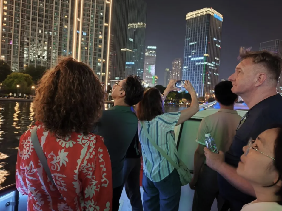 To deepen cultural exchanges between China and other countries and help foreign faculty members experience the charm of Tianjin, the International School of Engineering at Tianjin Chengjian University organized a cultural event titled "Night Tour of Haihe River—Me and Foreign Professors Exploring Tianjin Together" on May 21. Led by Yang Ping, Secretary of the School’s Party Committee, three Chinese faculty members and six Polish professors from Bialystok University of Technology strolled through Tianjin city and enjoyed the nightscapes, immersing themselves in the profound heritage and modern vitality of Haihe River culture.