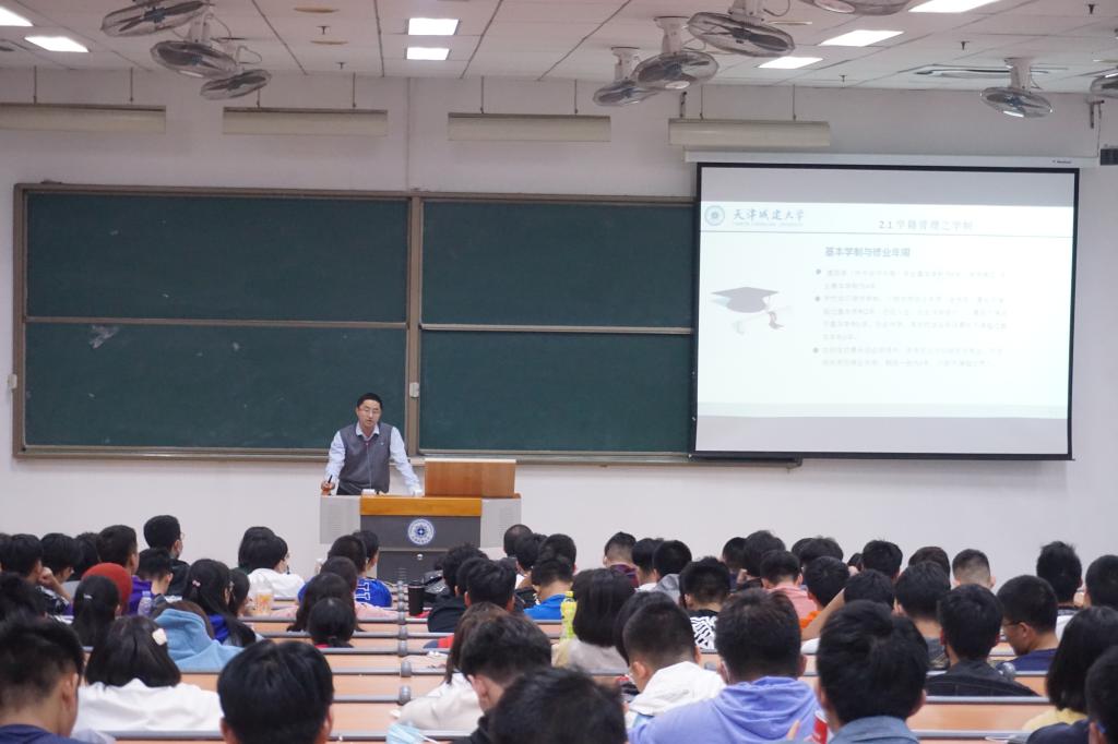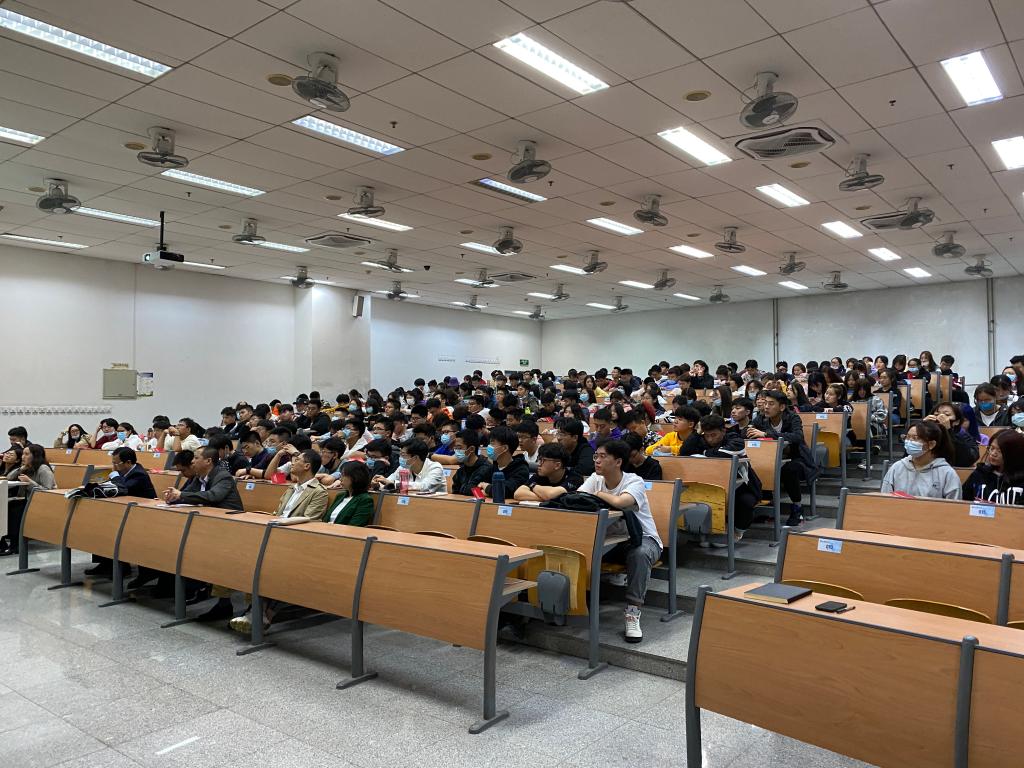 229名清新的面孔进入了国工公司已两周,给公司带来一股全新的气息。为了使新生更好地了解公司,熟悉公司,更好地开启老员工活,国工公司于10月10日晚在现教阶梯教室举行了2020级新生入学教育大会。公司直属党支部书记杨萍、经理黄凌翔、副经理李光旻、土木与环境工程系、建筑与风景园林系、员工工作办公室、教学办公室以及党政办公室的相关教师出席了本次会议,会议由副经理李光旻主持。