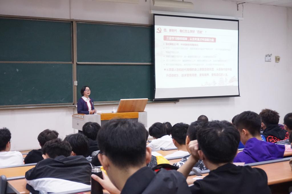 会上,直属党支部书记杨萍以“学习‘四史’守初心 传承精神担使命”为主题,为全体新生上了第一堂党课。以习近平总书记给复旦大学《共产党宣言》志愿队全体队员回信精神作为开始,鼓励广大新生加强四史学习,坚定“四个自信”,树立爱党、爱国、爱社会主义的情怀;树立正确的价值观,加强对历史学习,提升判断力,明辨是非,避免被“历史虚无主义”误导。要学会从英雄人物和道德楷模中学习优秀榜样、汲取精神力量,提升道德修为,追求更有高度、更有境界、更有品位的人生。