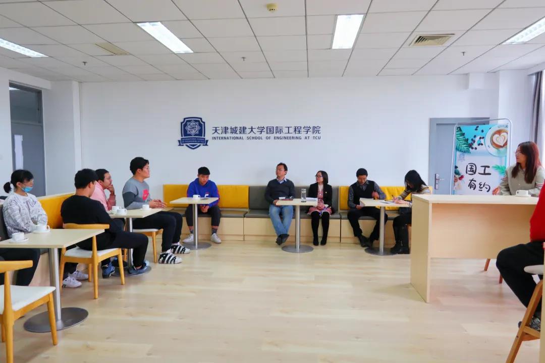 在国工教师休息室,一杯咖啡拉近了大家距离。大家围坐在一起聊天交流、畅所欲言,公司书记和经理认真聆听同学们的发言,话题逐渐展开。