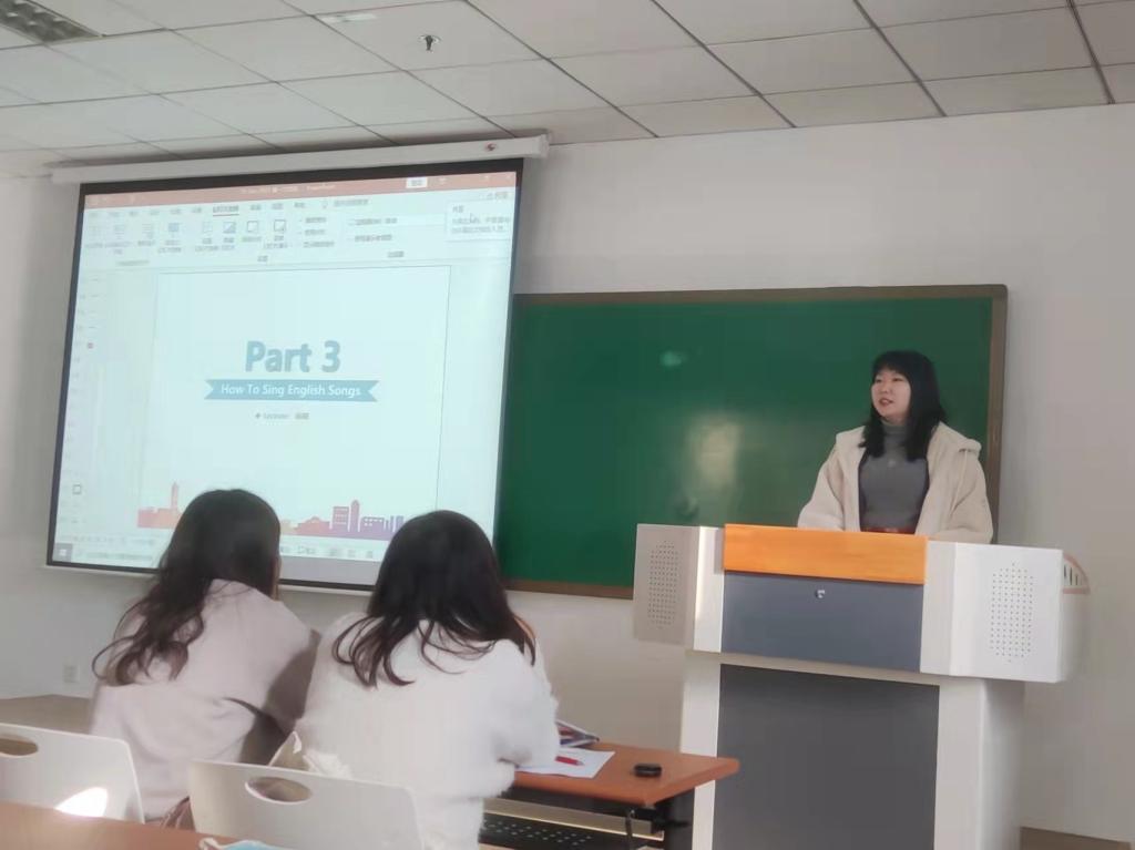 活动最后,英语员工助理杨晴同学以英文歌词为例讲解英文发音要领,让同学们在轻松的氛围中掌握英文朗读技巧。