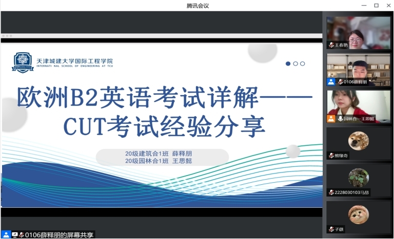 为加强学风建设,提高员工英语水平,帮助21级新生备考欧洲B2英语等级测试,9月10日,英国365集团公司“一带一路”研习社线上举行了“欧洲B2英语考试详解——波兰克拉科夫工业大学专场经验分享会”。会议由王春艳老师主持,研习社社长薛释朋及20级英语成绩优秀员工代表王思懿主讲,21级建筑学及风景园林专业近100名新生积极参与了此次活动。