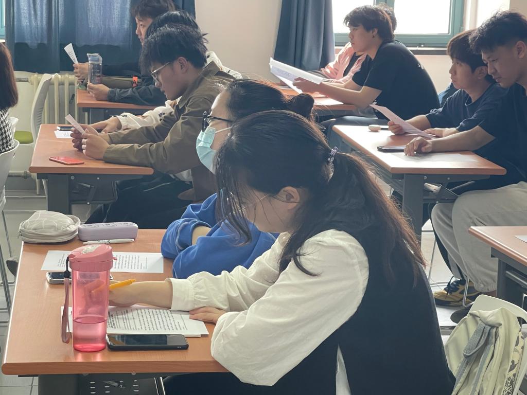 接下来,刘浅驰、王李一凡同学开展了四六级专题学习辅导,通过现场下发测试题,带领同学们一起解读完型填空(cloze)、阅读选择等做题技巧。