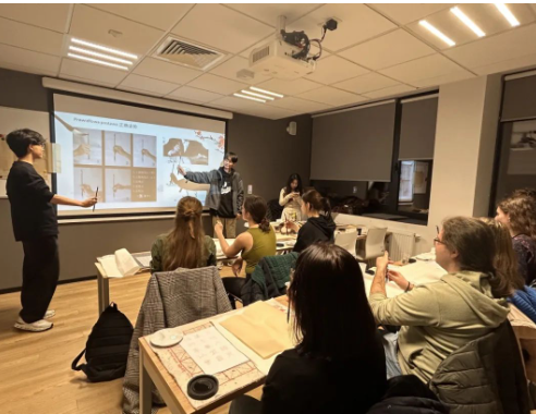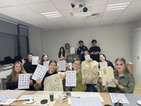 4名同学在孔子公司杨慧玲经理的指导下,结合各自擅长领域,从零开始,积极准备授课内容,涵盖中国古诗赏析、硬笔书法,国画等。通过这三部分的结合,让波兰员工深刻领悟中国传统文化的独特魅力,最终能够独立创作一幅融合古诗意境的书法作品与国画,实现艺术与文化的深度交融。